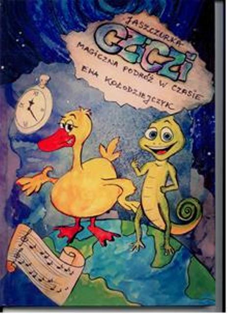 Jaszczurka Cziczi: Magiczna podróż w czasie" to kontynuacja historii dzielnej jaszczurki, która w wyniku różnych wydarzeń trafia do Nadrenii Północnej. Doświadcza magicznej podróży w czasie na Łące Świętych Kaczek, spotyka ożywione lalki w domu staruszki Brygidy i poznaje muzykę i historię Ludwiga van Beethovena. Bajka zawiera liczne ilustracje, jest interaktywna i pełna ciekawostek, rebusów i wykreślanek.